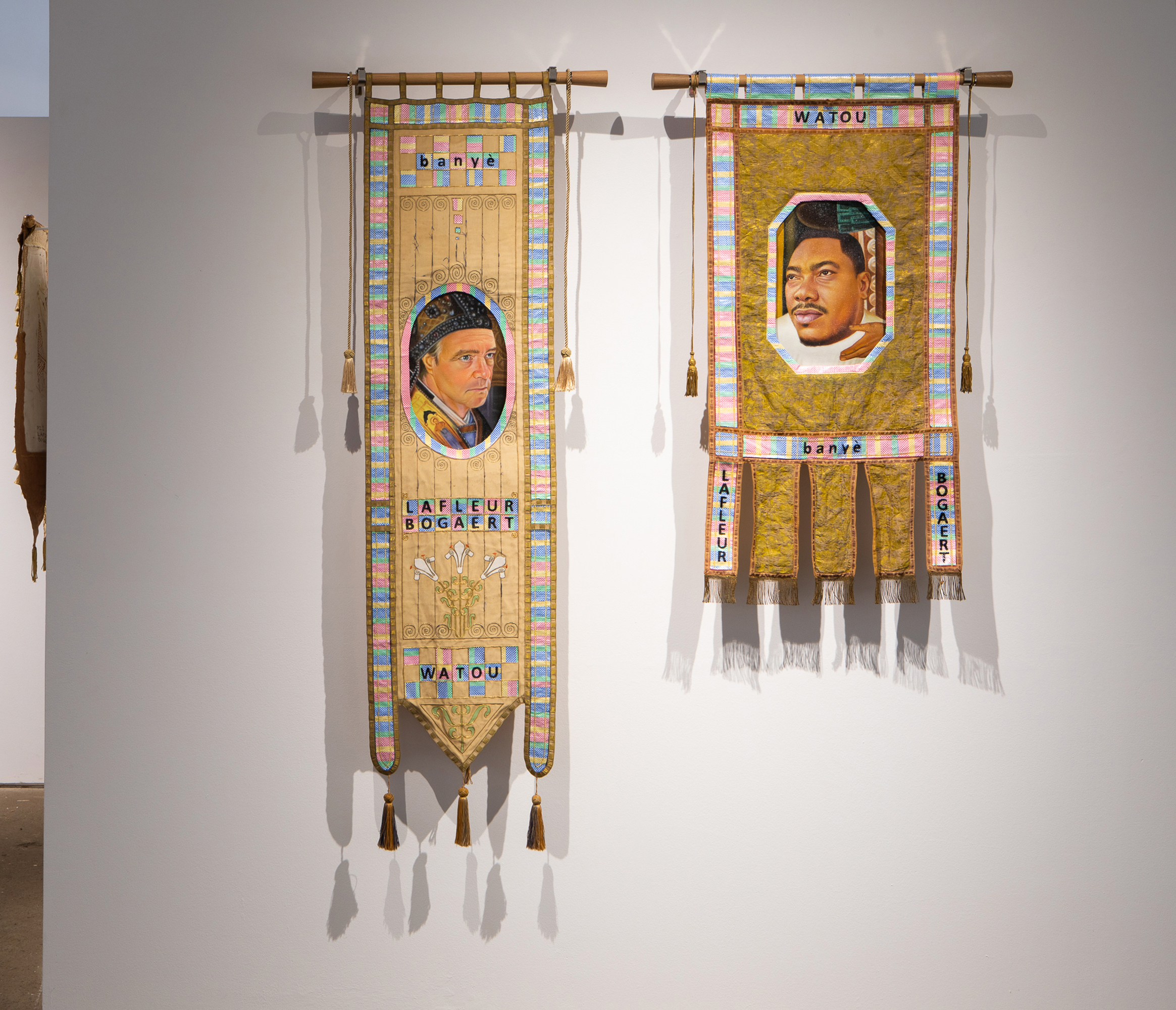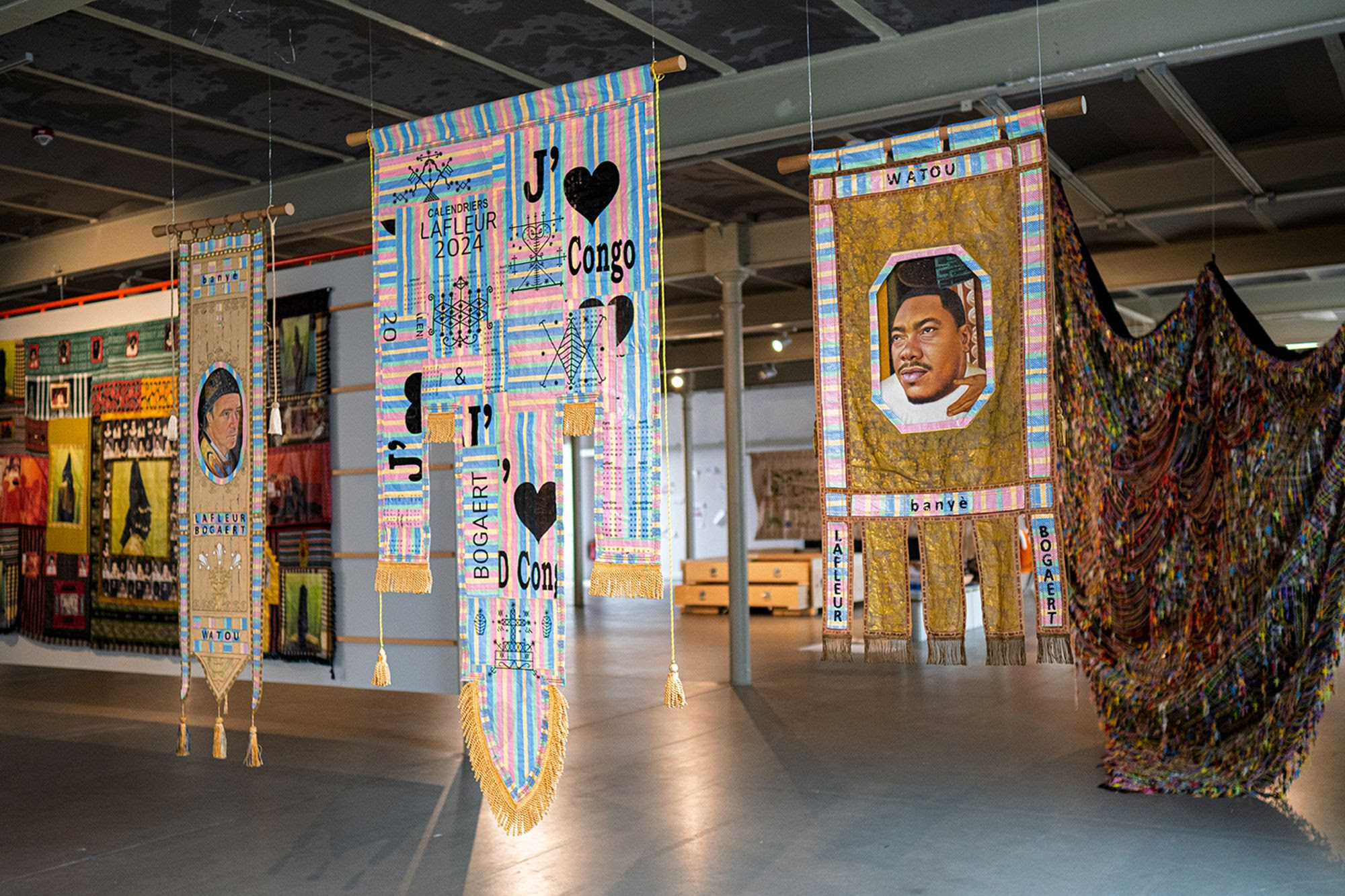 For the Watou Arts Festival in Belgium, artists Lafleur & Bogaert draw inspiration from historical religious banners in the Watou church to create their own contemporary propagandist banners. The title 'Banyè' is derived from the Haitian-Creole spelling of the French word 'Bannière.'