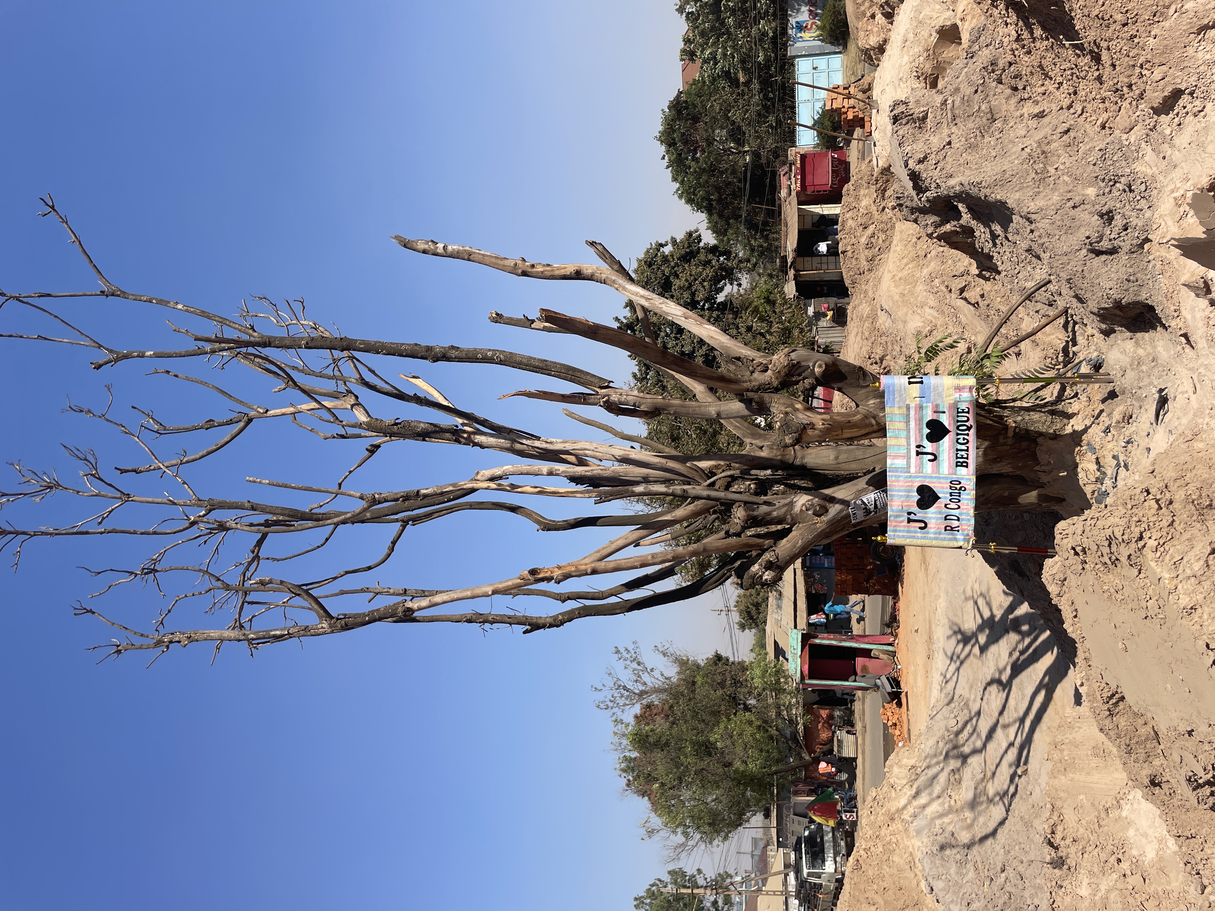 After its launch in Lubumbashi, the first stop was the Sauti ya Macho Art Festival and the National Museum of Kolwezi. There, in a major mining center known for copper, cobalt, and uranium extraction, the duo created a 15-meter banner mounted on a hand-cranked device—functioning like a horizontal stop-motion film of new Kolwezi-inspired “J’aime” slogans.